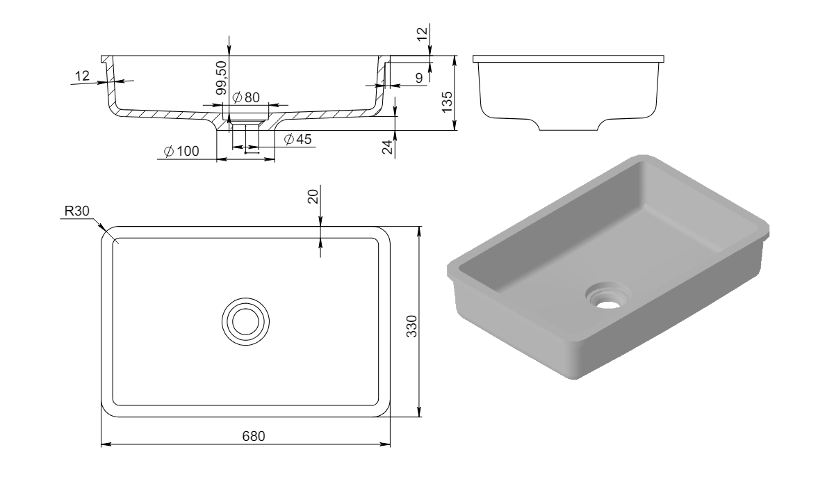 Тип установкиВрезная снизу