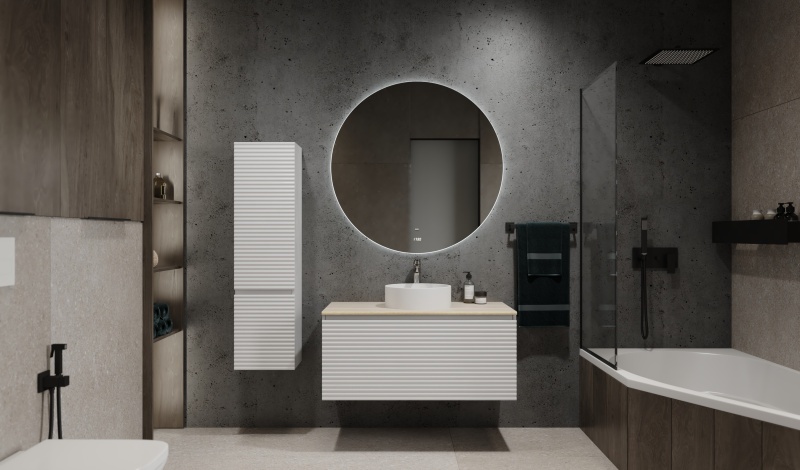 Простой и лаконичный, но в то же время стильный, современный дизайн позволят комплектам вписаться практически в любой интерьер. Сочетание деревянной богатой текстуры столешницы с четкими геометричными линиями на фасадах корпуса создает эффектный внешний вид коллекции и отражает дизайнерскую задумку. Тумба выполнена из влагостойких материалов, столешница -из МДФ в пленке ПВХ. Вместительный выдвижной ящик оснащен внутри скрытым ящиком для хранения мелочей.