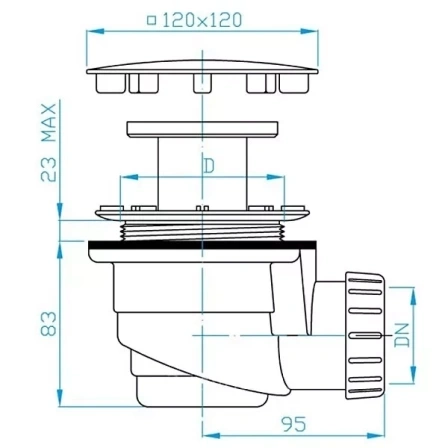 EWE0852 Сифон для душевых поддонов 90/50 хром, квадрат
