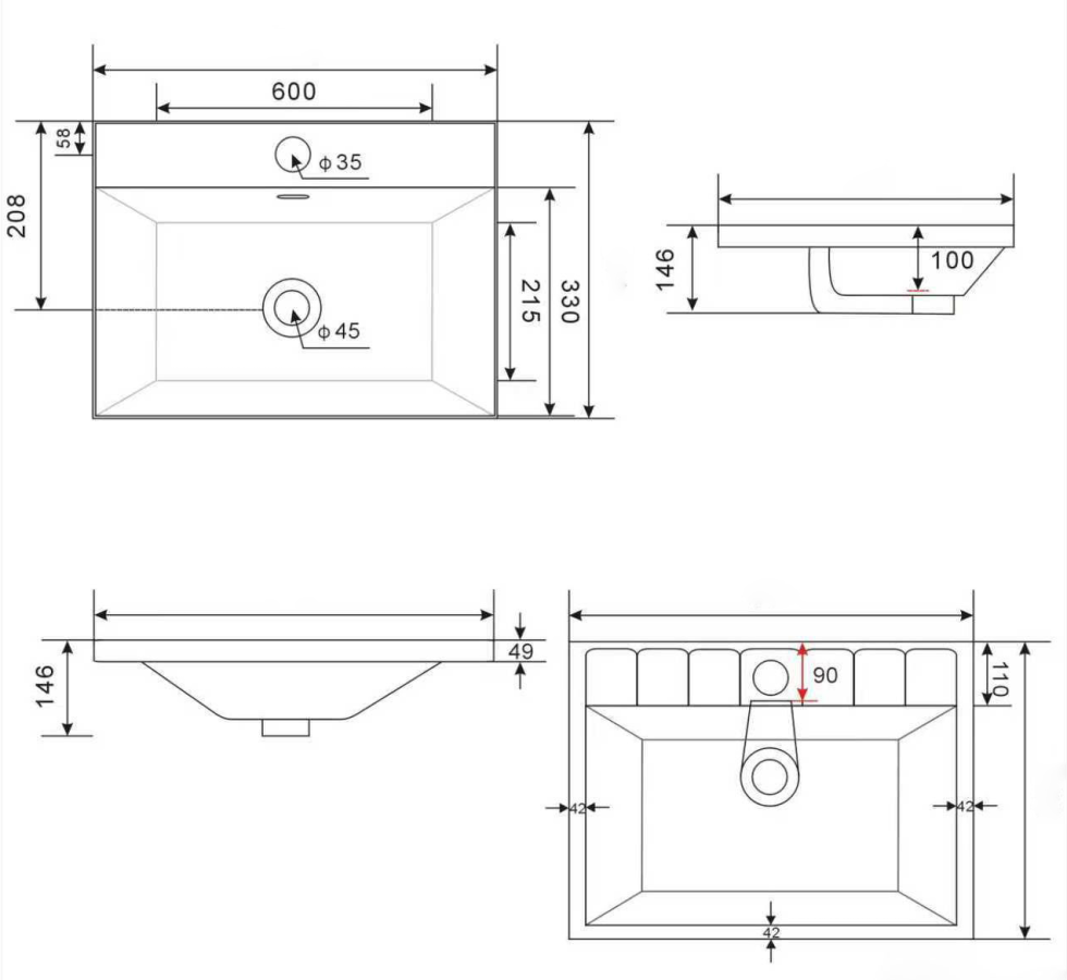 Отверстие под смесительЕсть