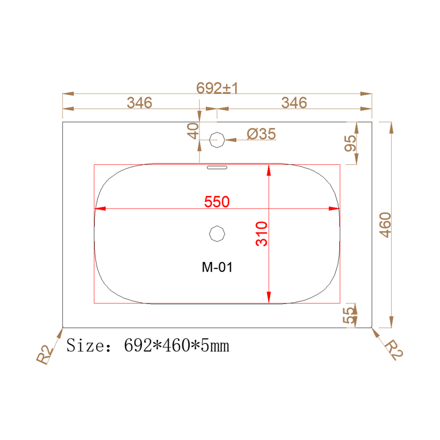 M115B70 Раковина накладная из авиаля 70см темный коричневый OLIVEEKA