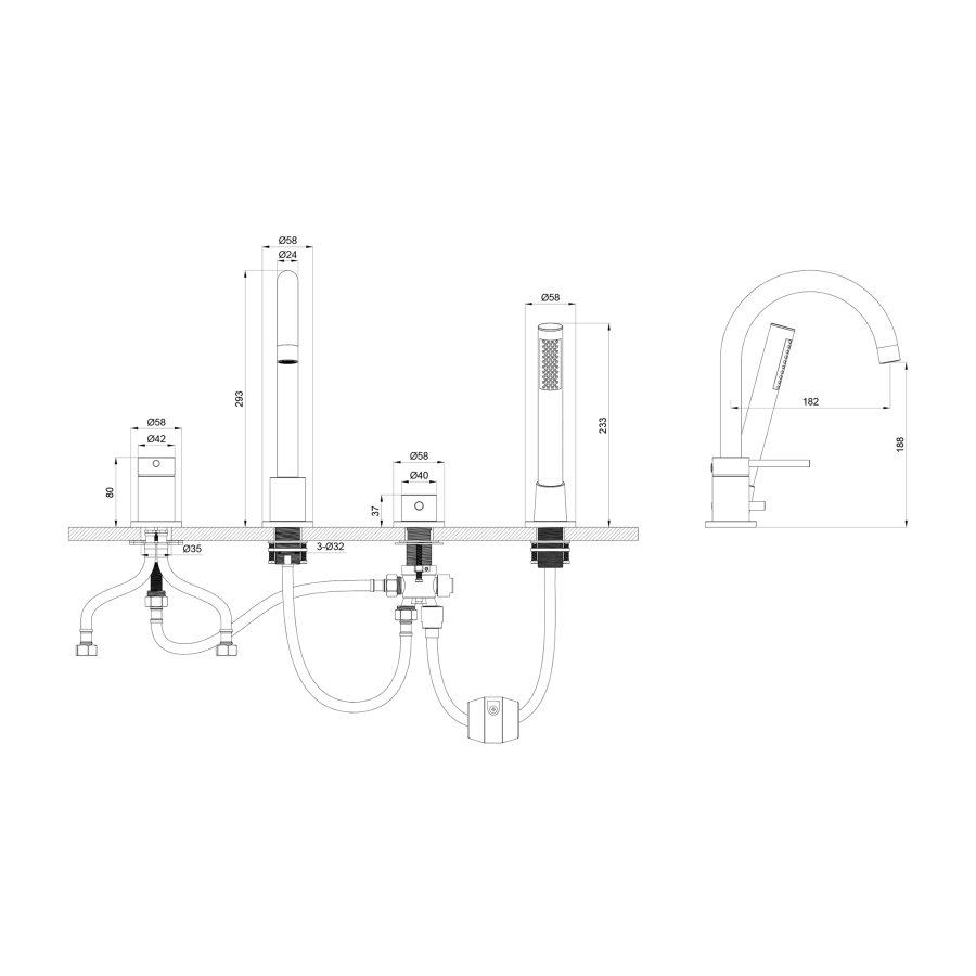 встраиваемый, на борт ванны