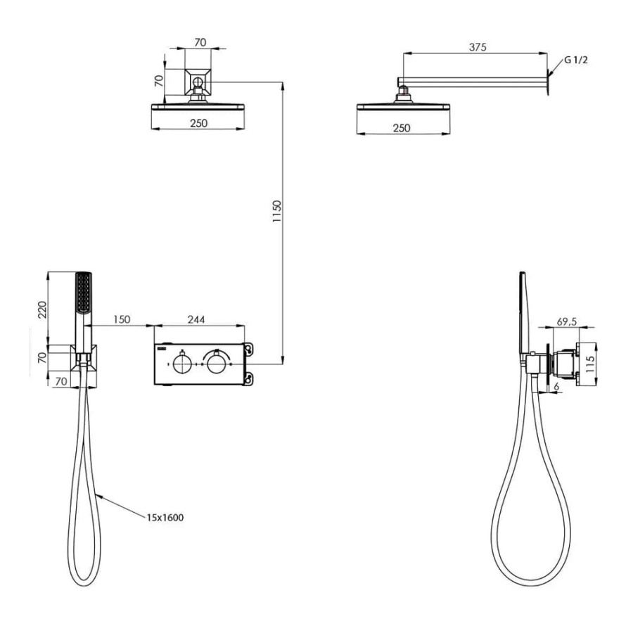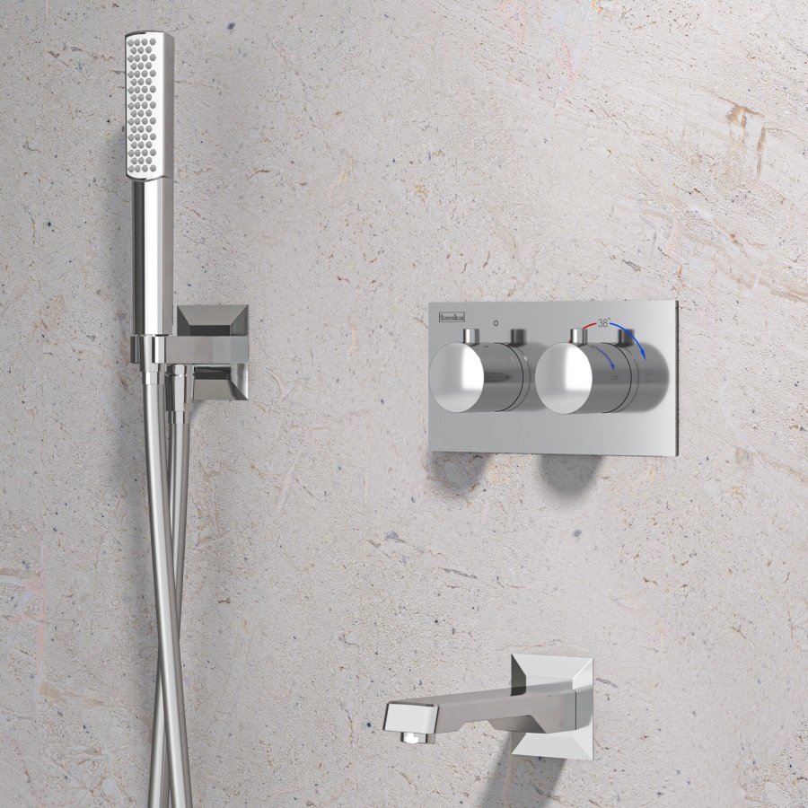 T4100C Встраиваемый термостатический смеситель Teona с душевой лейкой и головным душем, хром TESKA